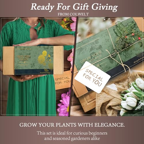 Colwelt Tuingereedschapsset, robuust tuingereedschap met houten handvat, inclusief tuintas, kniebeschermers, handschoenen, omplanter, kwekers, tuincadeaus voor